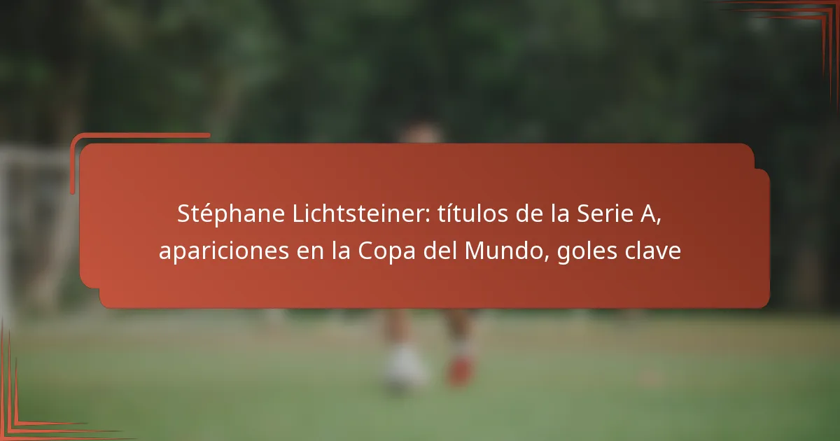 Stéphane Lichtsteiner es reconocido por su exitosa carrera en el fútbol, marcada por múltiples títulos de la Serie A, significativas apariciones en Copas del Mundo y goles clave que han definido su legado. Sus contribuciones al fútbol de clubes e internacional lo han convertido en una figura prominente en la historia del deporte suizo.